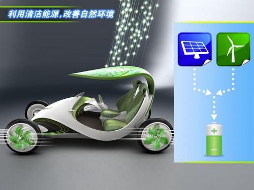 “叶子”的四个车轮就是四个风力发电机,通过捕捉散逸的风能,将风能转变成电能,充入自身电池储存能源,形成辅助电驱动系统,最大限度拓展利用新能源。