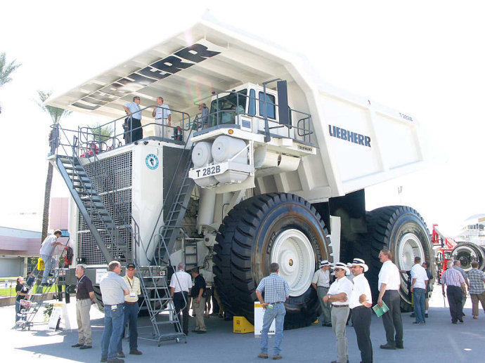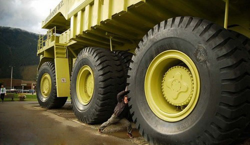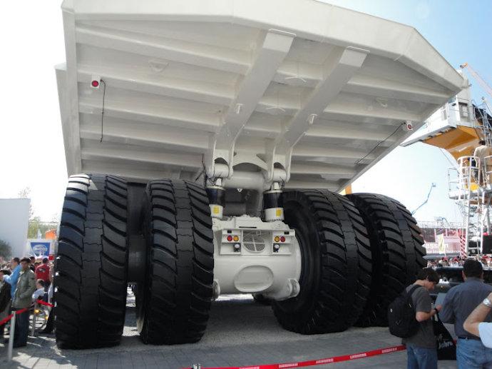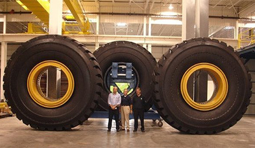世界上最大的轮胎是由米其林公司生产的59/80R63XDR型号轮胎,轮胎高4米,厚1.5米,重达5.5吨,重量相当于2.5辆宝马SUV X5、7辆奔驰smart。装配在LIEBHERR T282超级装运卡车上。