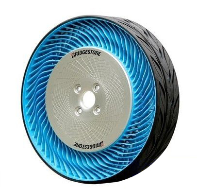 在2013年第43届日本东京国际车展上,普利司通集团展出了其第二代“非充气轮胎”。这款轮胎通过革命性的新型设计使轮胎的承载能力、环保性能以及行驶表现得到进一步提升。