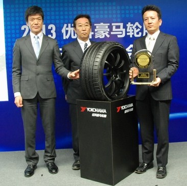 YOKOHAMA(优科豪马)轮胎新品发布会暨颁奖仪式,4月21日在上海新国际博览中心E6馆举行。优科豪马橡胶有限公司董事长田中孝一与上海优科豪马轮胎销售有限公司总经理竹内保德,共同揭幕了将于今年4月在中国上市的一款新品轮胎“ADVAN Sport V105”。