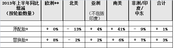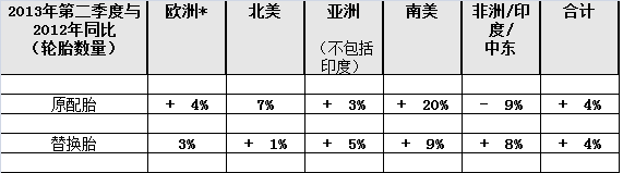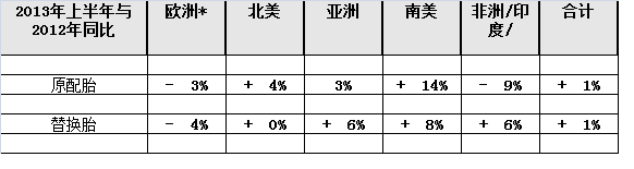 在北美,相较于表现强劲的2012年的上半年,经济不确定性和大量新标准和法规的实施导致新卡车价格上涨,使原配胎市场需求下滑13%。