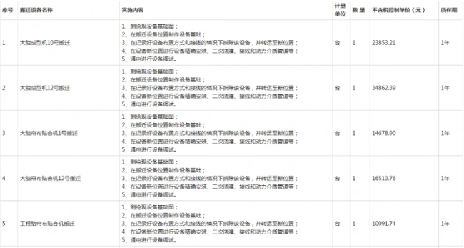 该项目涉及10项关键生产设备的搬迁与重新安装,预算金额约30万元。