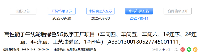 高性能子午线轮胎绿色5G数字工厂等4个大项目,宣布中标。