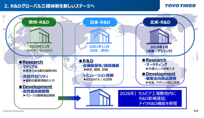 正值公司成立80周年之际,东洋轮胎社长清水隆,上台介绍新的研发架构。