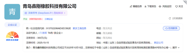近日,青岛鑫刚橡胶科技有限公司,在山东自贸区青岛片区注册成立。