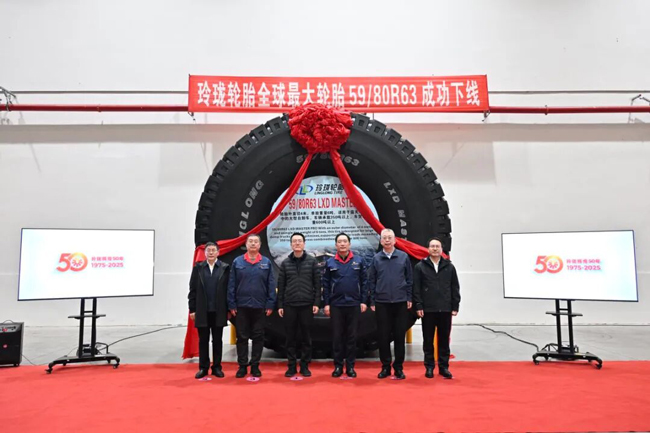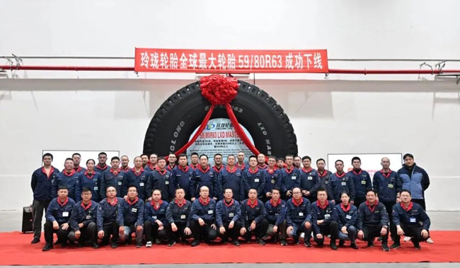 其首条自主研制的59/80R63“玲珑”品牌巨型全钢工程胎,成功下线。
