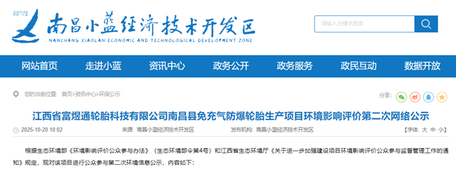 近日,江西省富煜通轮胎科技有限公司“免充气防爆轮胎生产项目”,进行第二次环评公示。