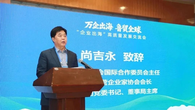 会上,山东省总商会国际合作委员会主任、省民营企业家协会会长、万达集团党委书记、董事局主席尚吉永,发表致辞。
