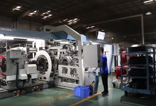 一道道工序紧密衔接,仅需37秒,一条新能源轮胎就成功下线。
