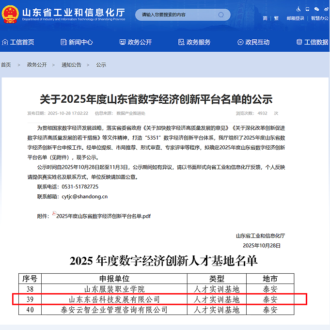 近日,山东省工业和信息化厅,公示了2025年度山东省数字经济创新平台名单。