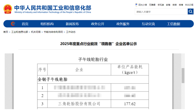 轮胎世界网获悉,在子午线轮胎行业,三角轮胎登上榜单。