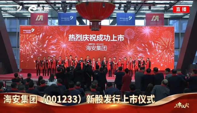 海安集团董事长朱晖、执行总裁朱振鹏等,出席上市敲钟仪式。