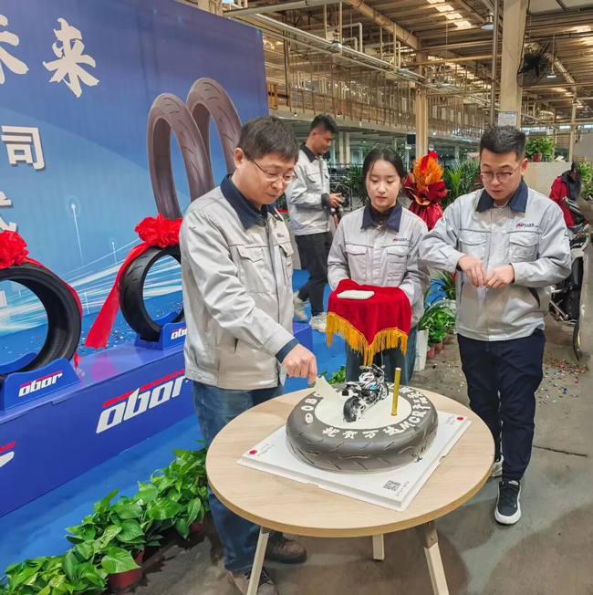 仪式上,该公司相关负责人,共同为MCR轮胎量产剪彩。