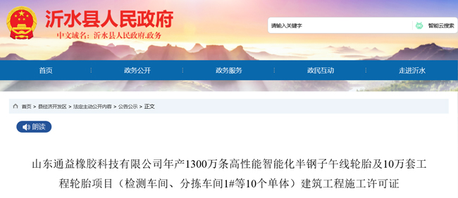 11月27日,山东通益橡胶科技有限公司新建轮胎项目,获颁建筑工程施工许可证。