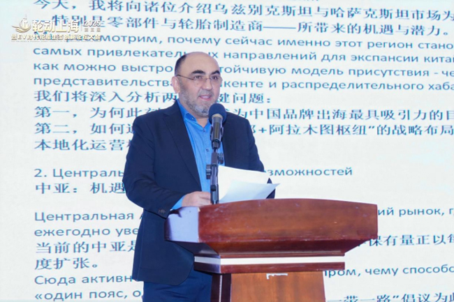 哈萨克斯坦NAV轮胎公司创始人阿赫梅多夫·阿扎姆汗,为大会致辞。