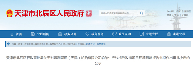 12月11日,天津市北辰区,公示一项轮胎生产线提升改造项目。