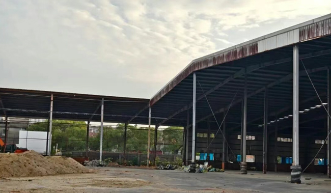 从现场图来看,轮胎厂已经开始内部改造,正在进行结构改造施工。