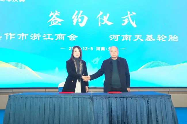 活动现场,焦作市浙江商会与河南天基轮胎有限公司,签署战略合作协议。
