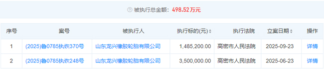 山东龙兴橡胶列入被执行人