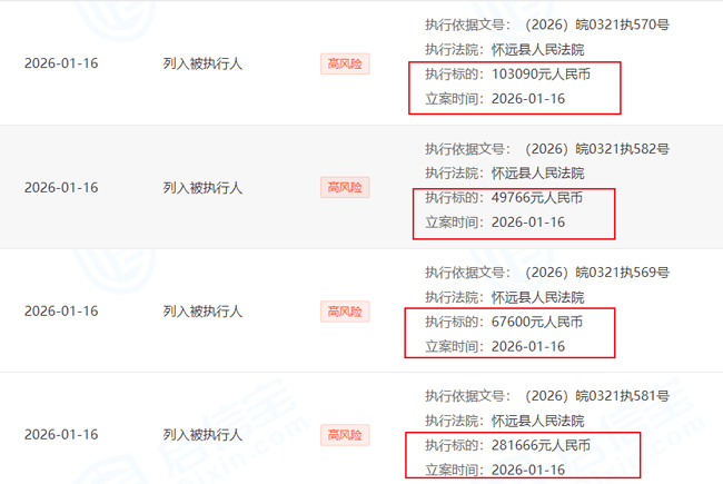 2025年12月30日,法院已对其下达限制消费令。