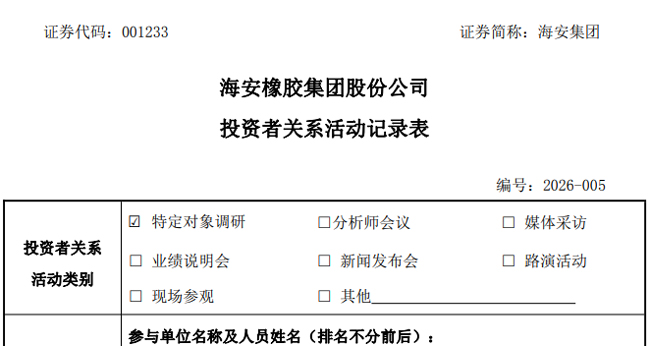 1月20日,海安橡胶集团股份公司,举行投资者调研活动。