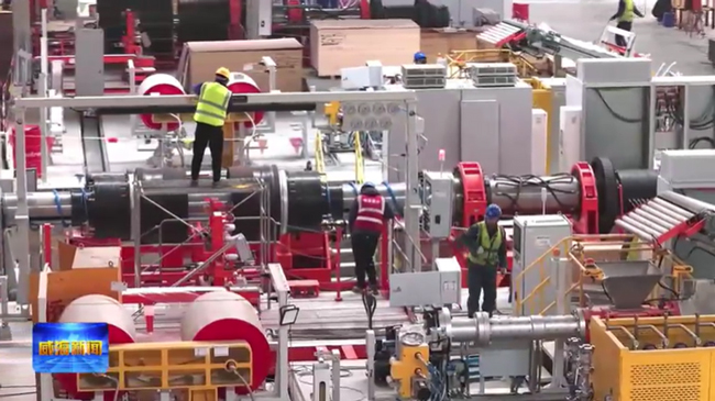 报道中,工作人员在项目建设现场,正在进行设备调试。