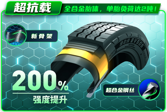 合金钢丝强度提高40%,单胎载荷可达2吨,超该规格国标70%。