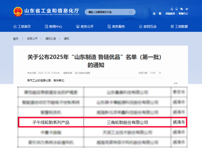 三角轮胎股份有限公司,凭借“子午线轮胎系列产品”成功入选。