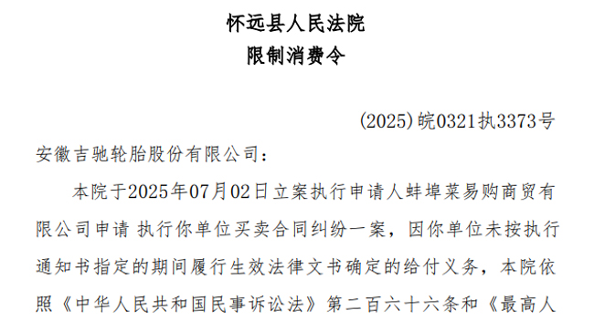 吉驰轮胎及法定代表人被限高