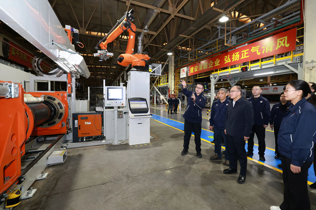 张恺颙一行就企业智能制造、科技创新、安全生产等,进行实地考察。