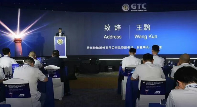 贵州轮胎党委副书记、副董事长、总经理王鹍,在会上发表讲话。