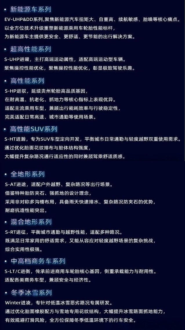内含新能源专用电盾系列(E-GuardMax)、UHP、HP、HT、AT、RT、LT等多个品类。