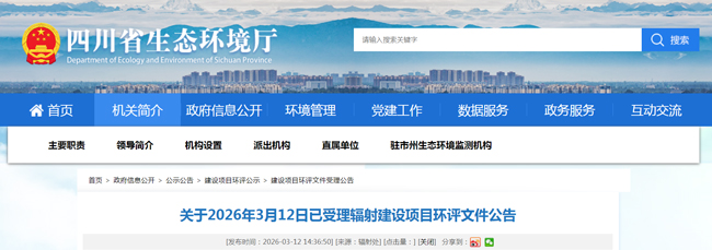 3月12日,四川省生态环境厅,受理两个建设项目的环评文件。