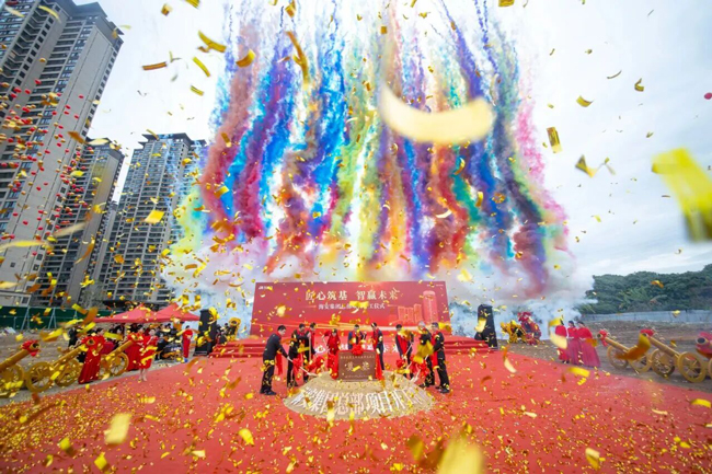 培土仪式环节,嘉宾们手持金锹,共同为项目奠基石培入第一抔土。