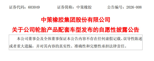 中策橡胶称,此次配套,将提升轮胎产品的市场认可度与品牌知名度。
