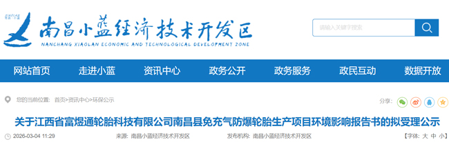 3月4日,江西省南昌小蓝经济技术开发区,受理一个轮胎项目。