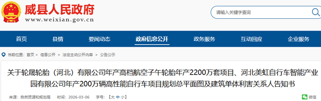 轮晟2200万套轮胎项目批前公示