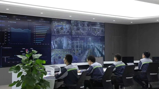 在工厂智慧平台大屏上,生产、品质、能耗等数据实时跳动。
