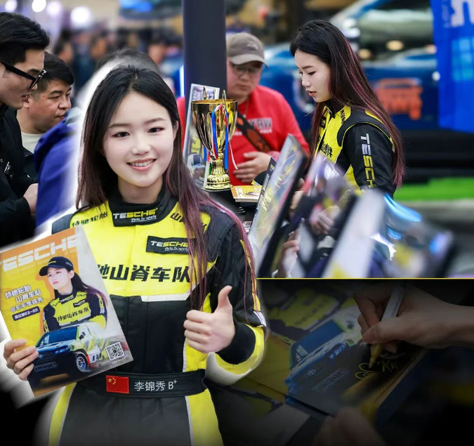展会期间,特驰山脊车队签约的COC车手李锦秀,极具天赋的10岁漂移车手李吴龙,亲临现场开展互动交流。