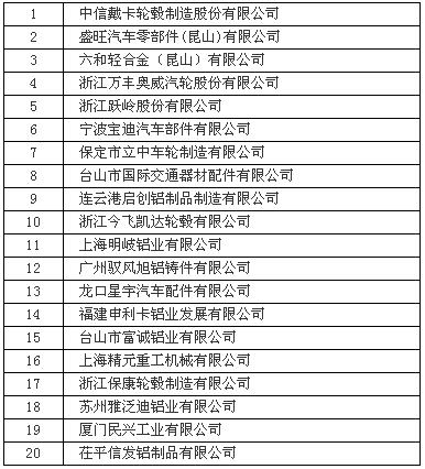 前6个月,出口铝制车轮的厂商总数累计达2201家。其中,出口排名前20位的厂商名单如下表:
