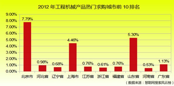 华东地区的需求始终保持第一的主要原因是来自传统求购大省山东的高需求,华北地区需求占比排在第二主要因为北京市对工程机械产品需求一直保持领先,东北地区和华南地区较其他几个地区则相对低迷一些。