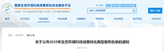 近日,国家生态环境部,发布2025生态环境科技成果转化典型案例。