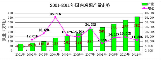 图4 2001-2011年国内炭黑产量走势