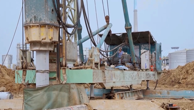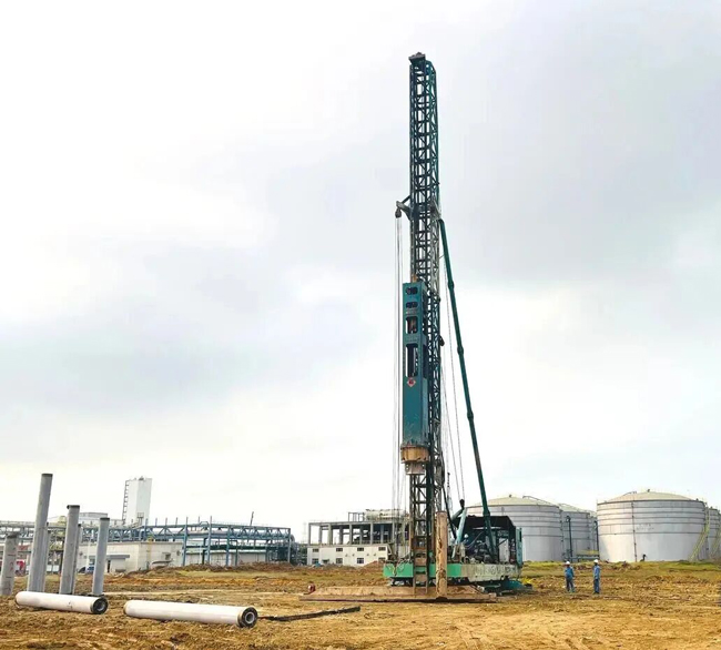 现场打桩机轰鸣声响起,首根试桩顺利精准贯入。