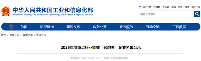 10月28日,国家工业和信息化部,公示2025年度重点行业能效“领跑者”企业名单。