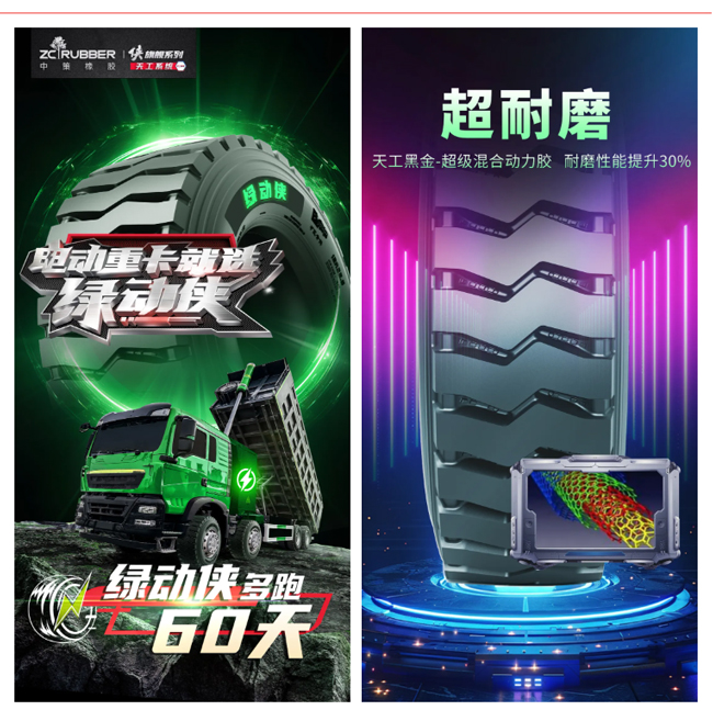 针对新能源重卡的特殊需求,中策橡胶打造了绿动侠新能源重卡轮胎。