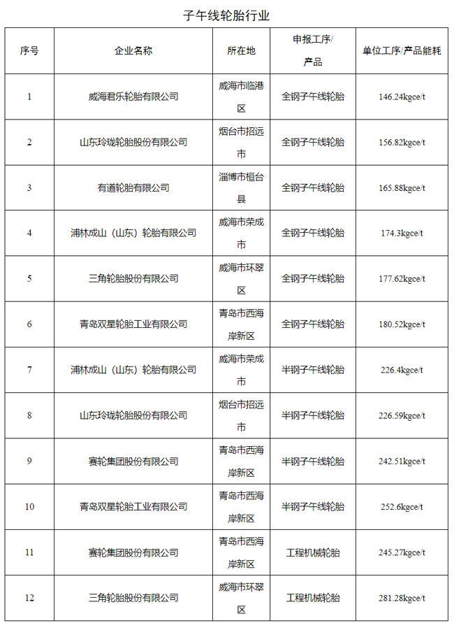 子午线轮胎行业名单中,有7家企业凭借出色的能效表现入选。