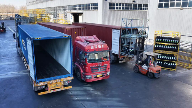 工人们正将刚下生产线的4.5万条轮胎,快速装车。
