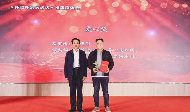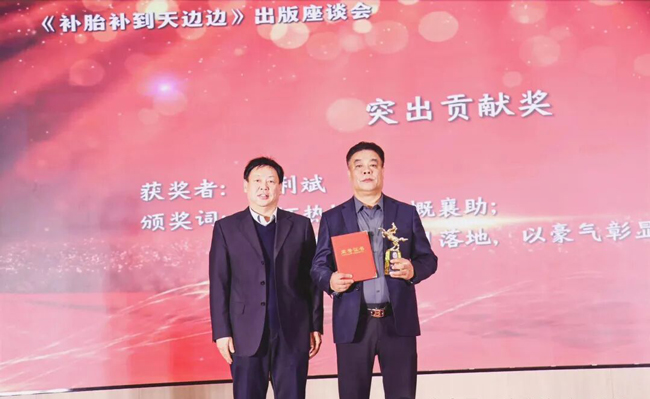 岐山县统战部副部长 吴宏昌为荣获《补胎补到天边边》一书出版 新疆中策进出口贸易公司董事长 张利斌颁发"突出贡献奖"