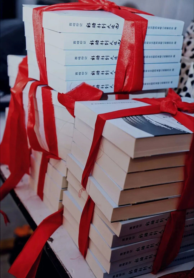 主编 王广军先生为 岐山县图书馆、岐山县作家协会、岐山县老科协、岐山县城关小学、故郡镇西塬村委会、岐山县轮胎业总商会、兰州轮胎商会赠送《补胎补到天边边》新书
